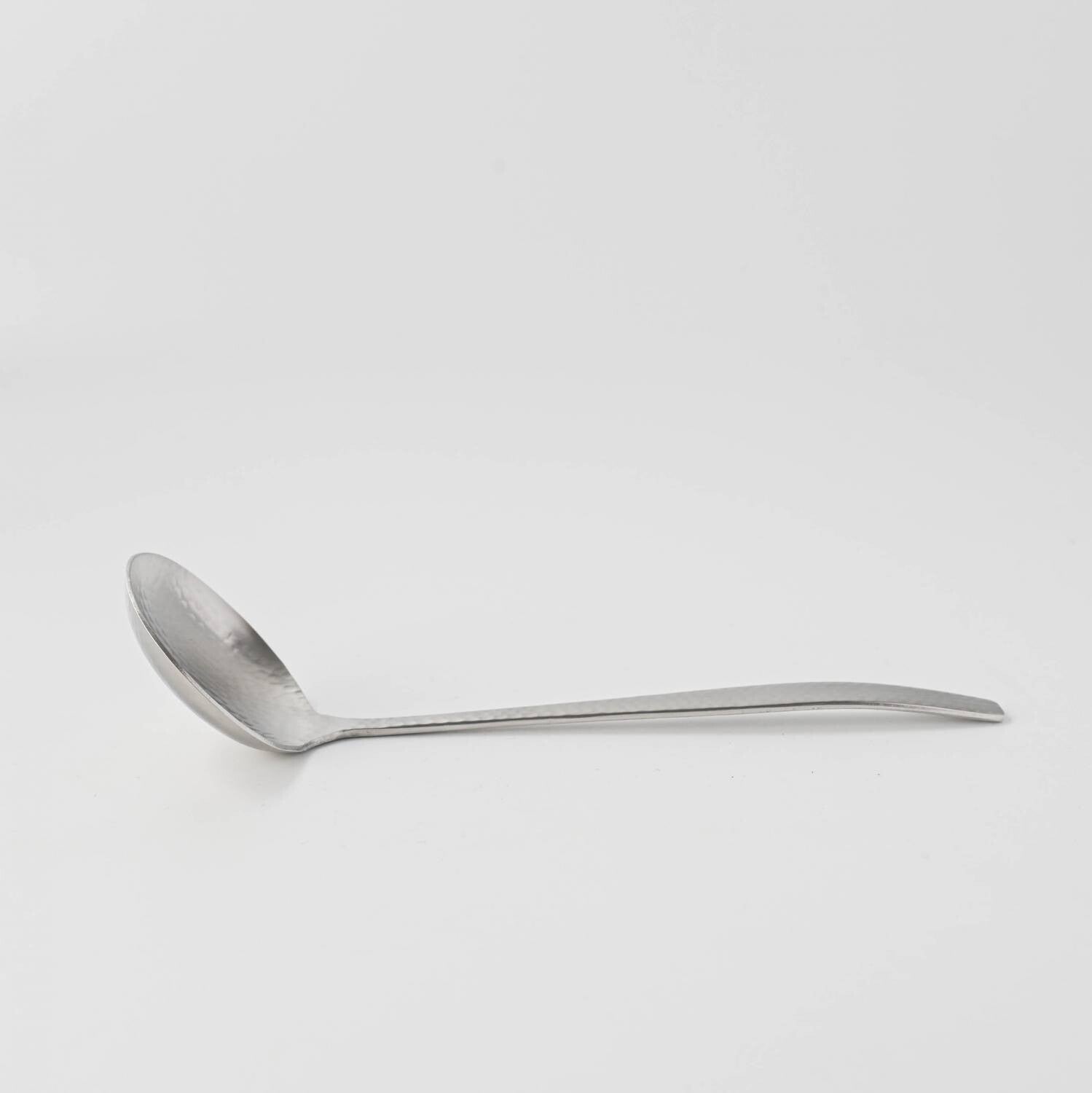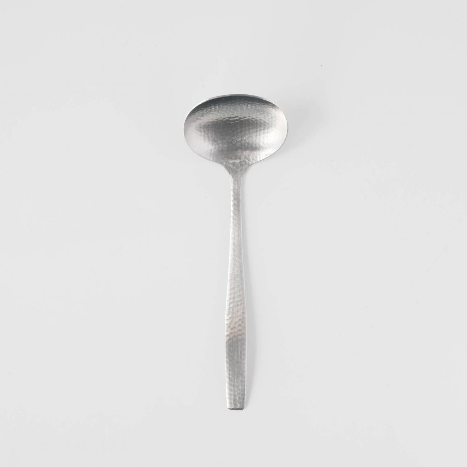 使用鎚目( つちめ ) 工藝手法,在金屬表面錘敲出深淺不一的凹凸紋理。敲打的痕跡增添了溫潤的手感,凹凸的紋理則隨著不同角度與光線折射映照出不同的光影變化。