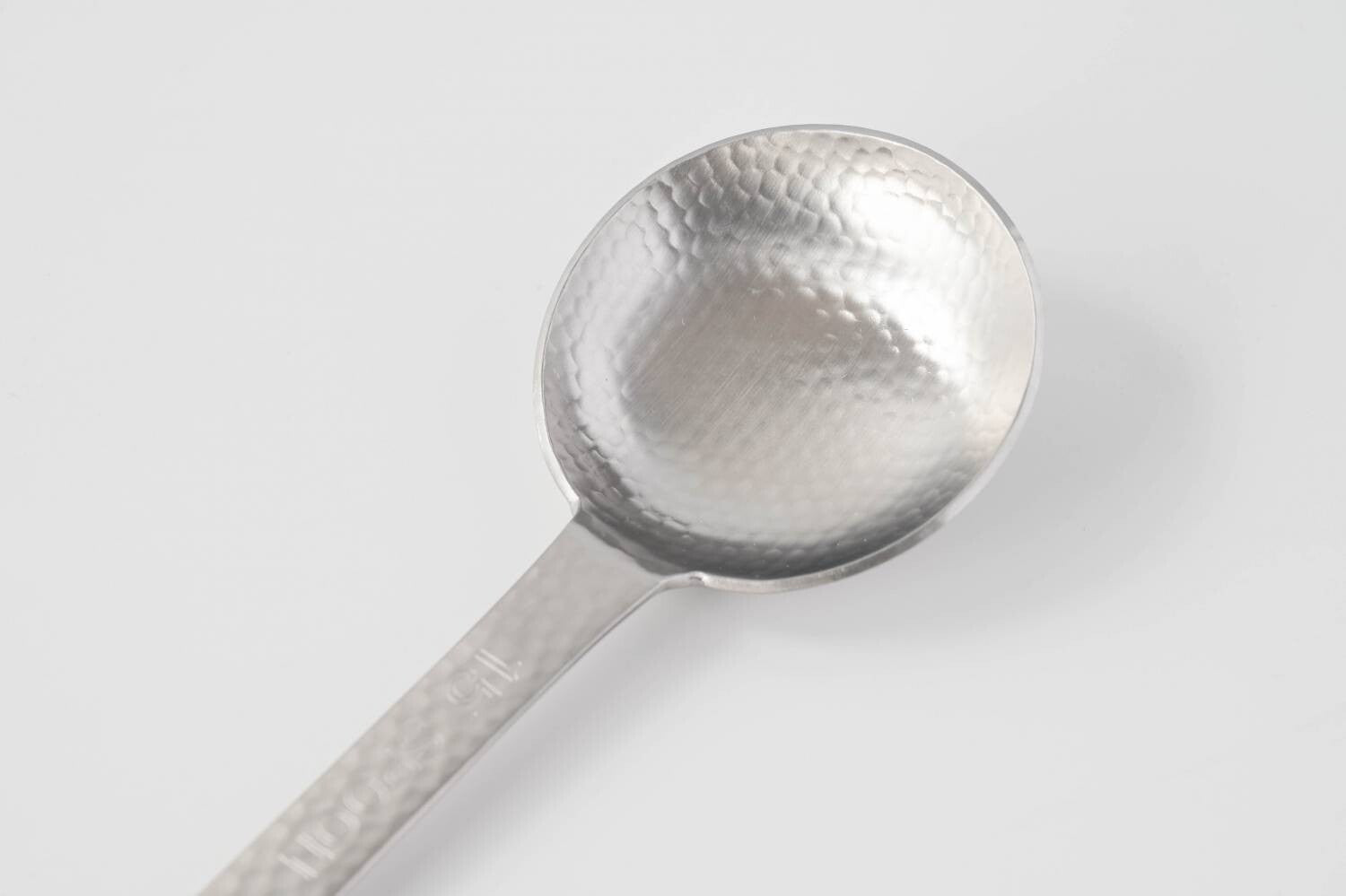 使用鎚目( つちめ ) 工藝手法,在金屬表面錘敲出深淺不一的凹凸紋理。敲打的痕跡增添了溫潤的手感,凹凸的紋理則隨著不同角度與光線折射映照出不同的光影變化。