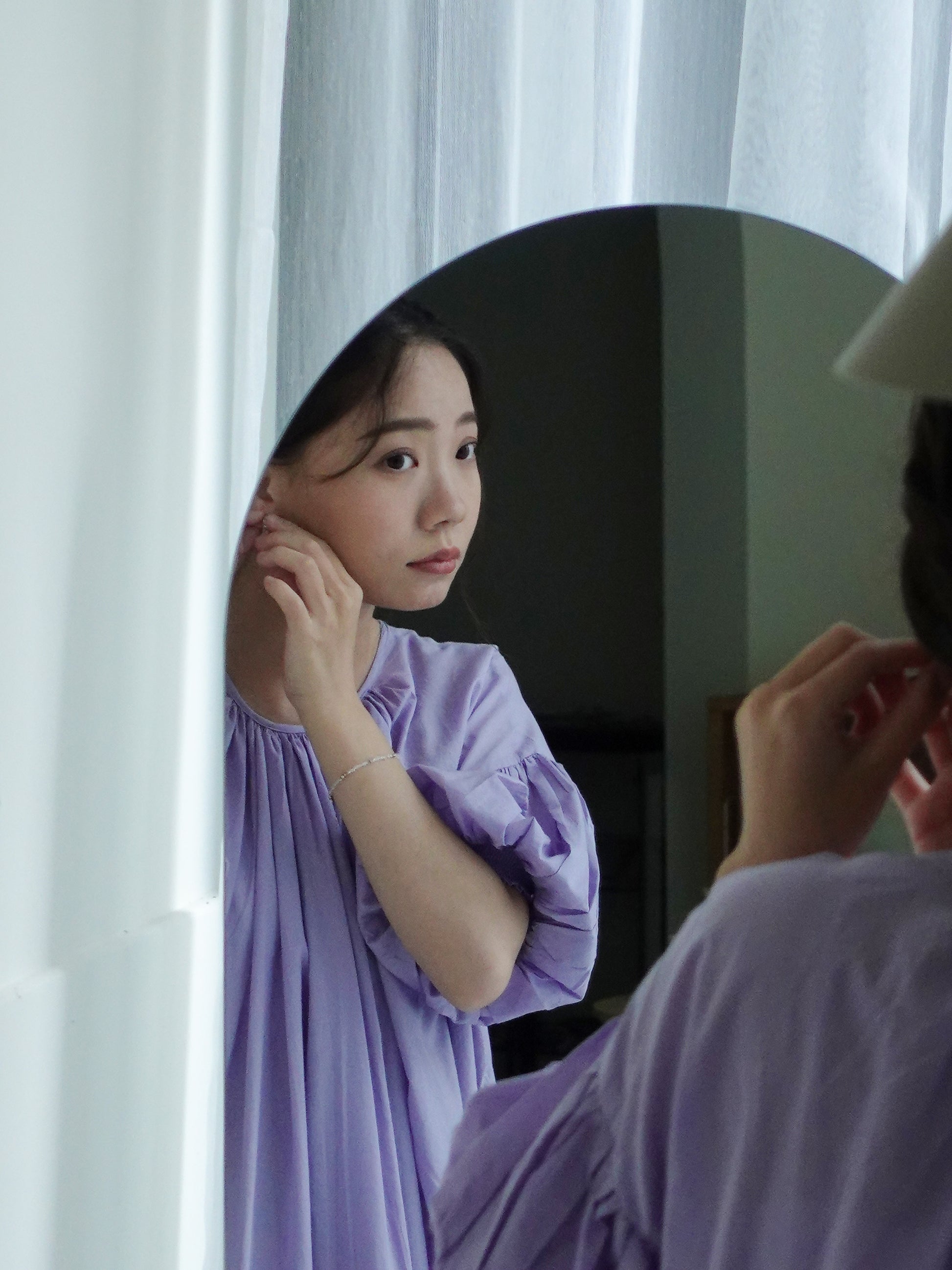 綁帶澎袖洋裝 薰衣草紫